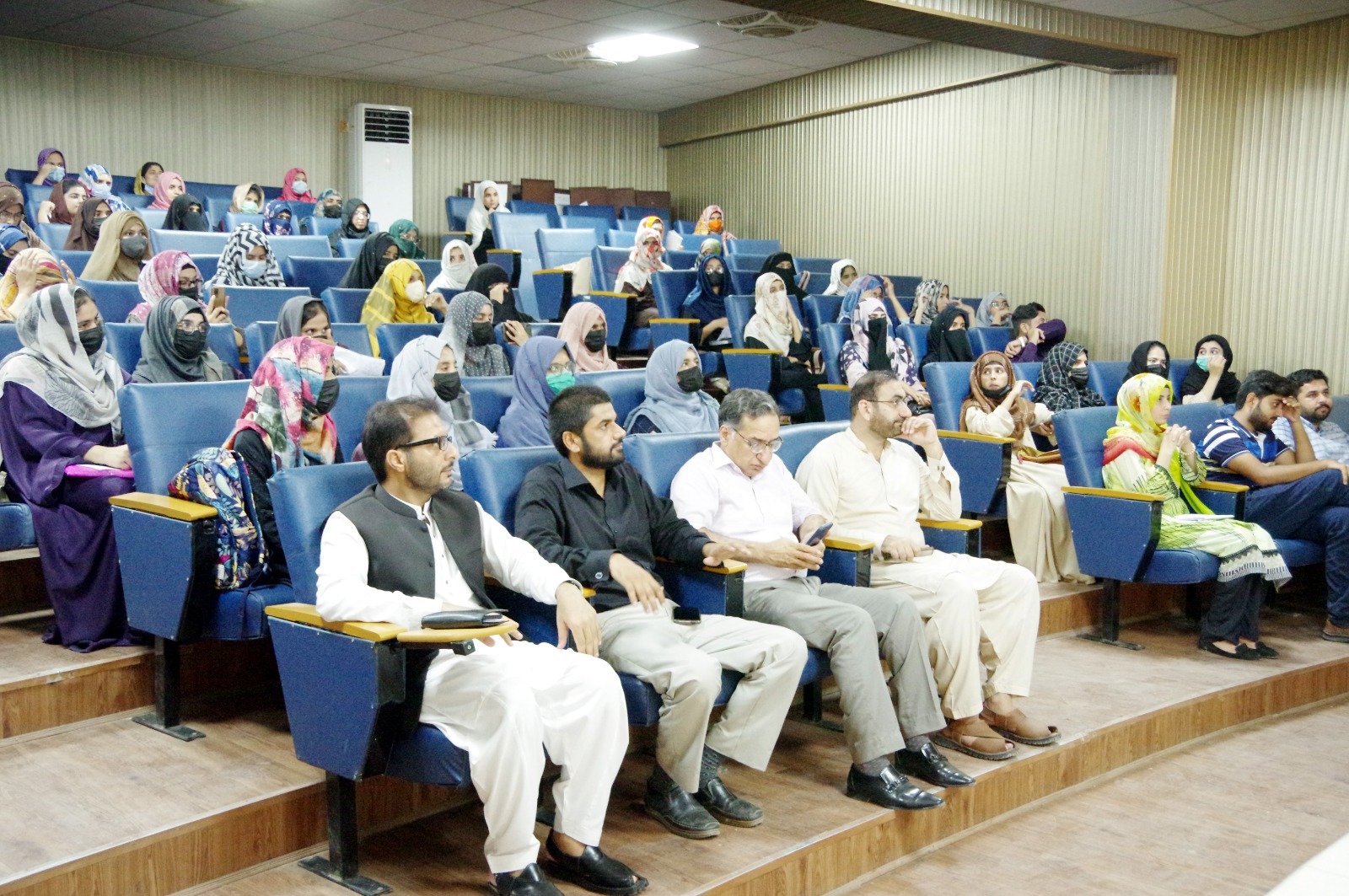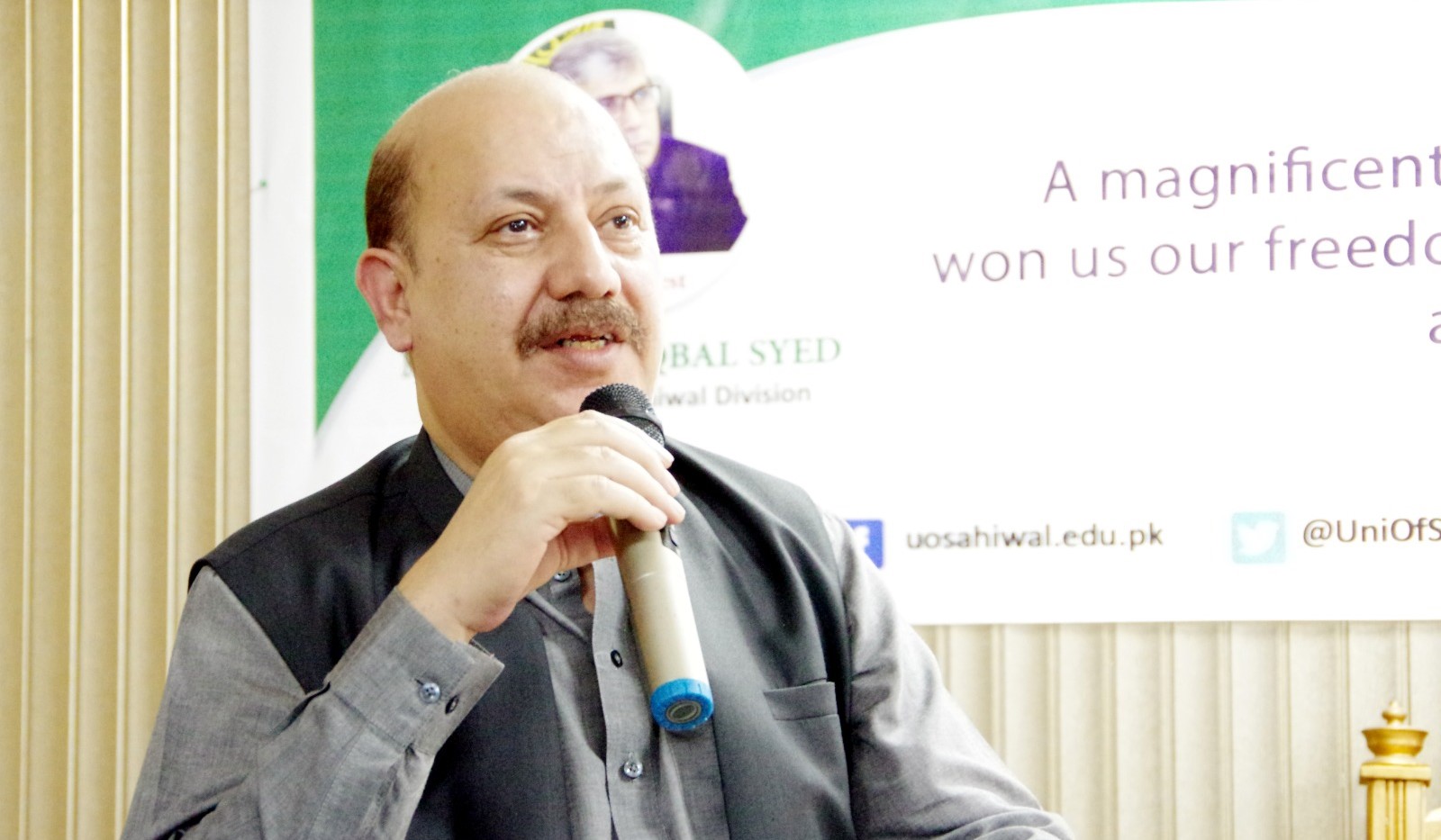 The 75th death anniversary of Quaid-e-Azam Muhammad Ali Jinnah (RA) was observed at the University of Sahiwal, and a seminar was organized by the Directorate of Student Affairs. The Commissioner Sahiwal Division, Mr. Shoaib Iqbal Syed, was the invited keynote speaker. He highlighted the major aspects of Quaid's life and explained the significance of his tireless work for Pakistan. The Vice Chancellor, Prof. Dr. Javaid Akhtar, thanked the honorable guest speaker and the attendees of the seminar, which was attended by a large number of faculty members and students.