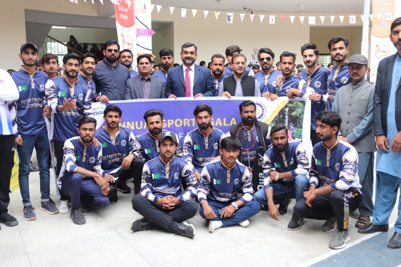 Opening Ceremony of Annual Sports Gala 2024. Ribbon Cutting by the Additional Registrar, Syed Ghulam Ali Asghar, Chairperson DBA, Dr. Waris Ali, and Director Sports, Dr. Tariq Masood.