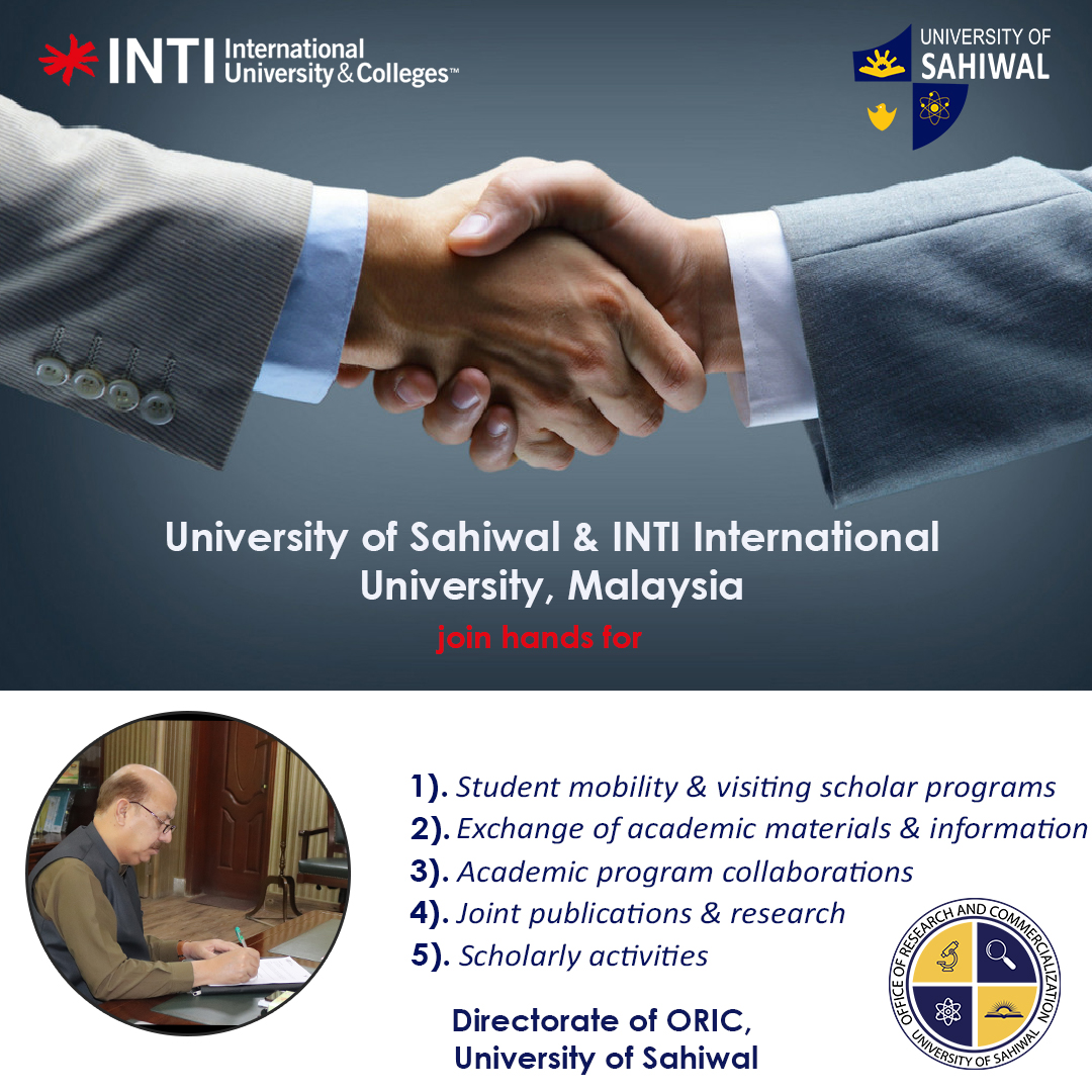 This collaboration signifies a shared commitment towards promoting academic excellence, research innovation, and cultural exchange between two esteemed institutions. As the Directorate of ORIC at the University of Sahiwal embarks on this transformative partnership with INTI International University, both organizations are poised to shape the future of higher education through collaborative initiatives that transcend borders and enrich scholarly pursuits.