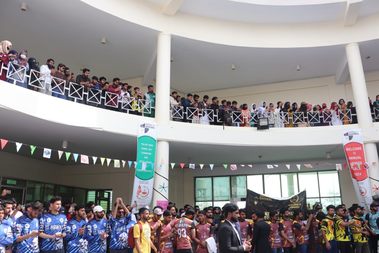 Opening Ceremony of Annual Sports Gala 2024. Ribbon Cutting by the Additional Registrar, Syed Ghulam Ali Asghar, Chairperson DBA, Dr. Waris Ali, and Director Sports, Dr. Tariq Masood.