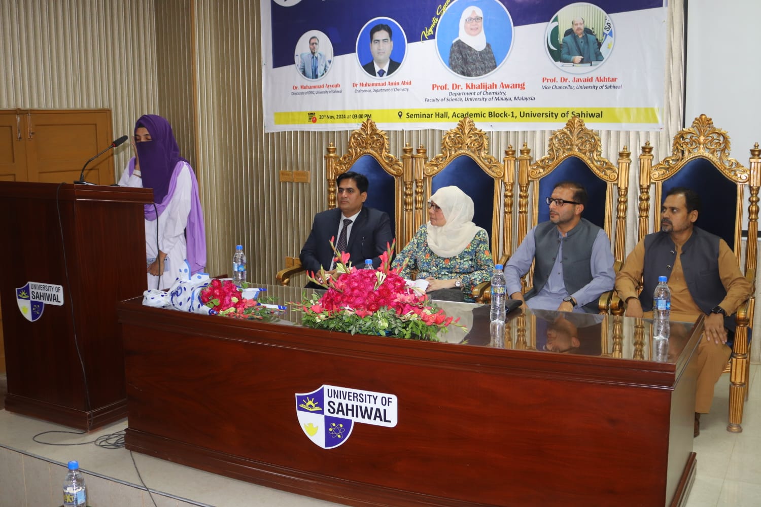 In a significant academic exchange, the University of Sahiwal welcomed Honorable Prof. Dr. Khalijah Awang from the University of Malaya (Malaysia) today. Her keynote lecture, titled 'Natural Products Research Strategies and Recent Findings from Malayan Flora', highlighted groundbreaking research in natural products and its implications for scientific advancement. This event, organized by the Department of Chemistry in collaboration with the Directorate of ORIC - University of Sahiwal, underscores the commitment to fostering international collaboration in education and research.